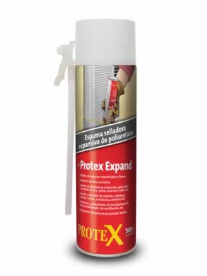Protex Expand es un aerosol de espuma de poliuretano que se expande en contacto con la humedad del ambiente y rellena todo tipo de cavidades.